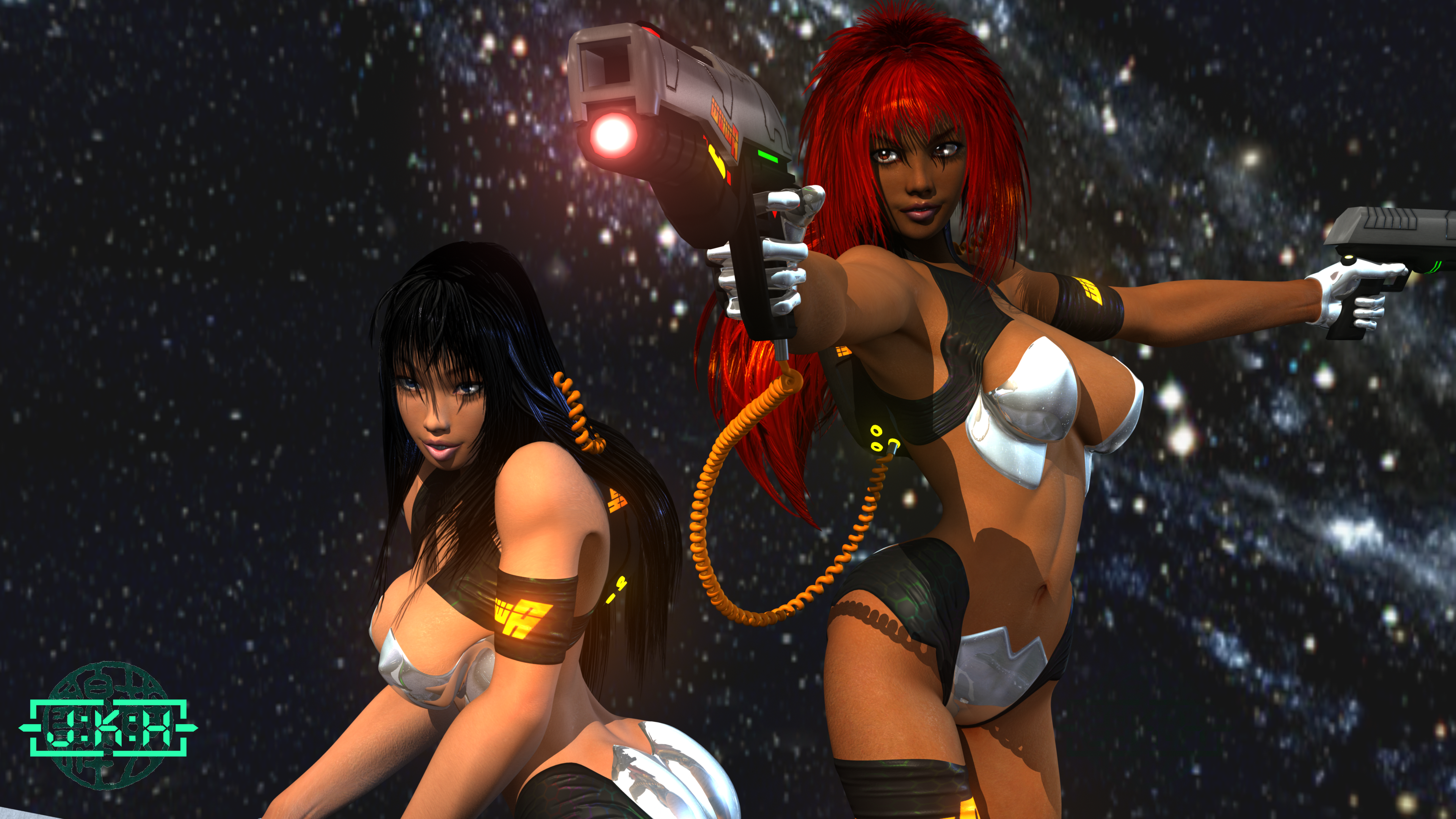 These are my fan art 3D models of the Dirty Pair (Lovely Angels), Kei and Yuri. They are inspired by the work by Adam Warren. Dirty Pair is copyright of Dark Horse Comics.